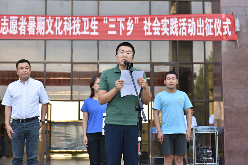 暑期社会实践志愿者代表孙小岳带领全体人员进行宣誓。