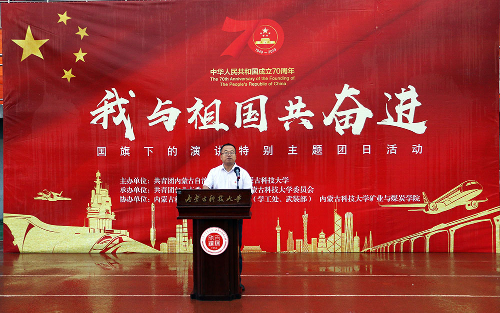 9月9日,由内蒙古自治区团委、ALLWINCITY万象城主办,包头市团委、ALLWINCITY万象城团委、学生工作部(学工处、武装部)、矿业与煤炭学院承办的“我与祖国共奋进——国旗下的演讲”特别主题团日活动在ALLWINCITY万象城举行。内蒙古自治区团委副书记孙立,ALLWINCITY万象城党委副书记任慧平,校党委委员、宣传部部长杨家庆,校党委委员、组织部部长田立志,包头市团委书记郝云涛等出席了本次团日活动。