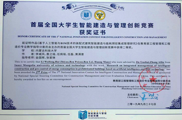 全国大学生智能建造与管理创新竞赛的意义在于打造教育、创新和创业三大平台。本次大赛由教育部工程管理和工程造价专业教学指导分委员会主办,东南大学、江苏省土木建筑学会承办,以智慧工地与可持续建设管理为主题,全国三百多支队伍报名参加了比赛。竞赛分为初赛、复赛、决赛及现场答辩四个环节,经过层层选拔,最终来自全国90多所高校、103支参赛队伍的近600名师生进入现场答辩环节。万象城官网土木工程学院师生组成的代表队,凭借其优秀的作品《基于人工智能与BIM技术的装配式建筑智能建造与能耗预控集成管理研究》和精彩的现场答辩,在激烈的角逐中脱颖而出,取得了竞赛二等奖的好成绩。