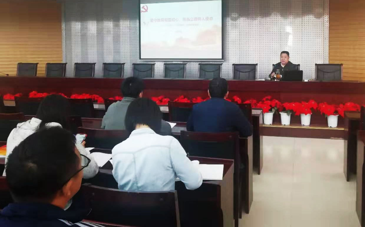 11月8日上午,副校长冯志强在行政楼A201会议室以《坚守教育报国初心,担当立德树人使命》为题讲专题党课。党政办公室(机关总支、档案馆、校友会)、学生工作部(学工处、武装部)、招生就业处、后勤处(节能办)、保卫处、离退休工作处、生命科学与技术学院、经济与管理学院、文法学院全体党员和部分学生党员代表参加学习。冯志强阐述了“不忘初心、牢记使命”主题教育的根本任务和重大意义,重点讲授了主题教育的五个具体目标。他指出,党员同志要进一步加强学习,坚持学习原著,学习马克思主义理论著作,学习党的最新创新理论成果;要求每一个党员同志要坚定共产主义理想信念,树牢“四个意识”,坚定“四个自信”,坚决做到“两个维护”;要坚持高校立德树人、为党育人、为人民培养人才的初心使命,将党建和中心工作相融合,以身示范,做合格共产党员,做四有好老师;要敢于担当,深入到师生中去,深入教育教学管理一线,就学生思想政治教育改革、招生就业、学生管理、后勤工作等方面不断探索实践;在深入学习和基层调研的基础上,树立服务意识,提高服务保障能力,坚持为全体师生做好各方面服务;要勇于自我革命,刀刃向内,遵守党规党纪,遵守政治规矩,廉洁自律,密切党和人民的血肉联系,发挥党员先锋模范作用,凝心聚力干事业,提高推动学校内涵式发展的本领和能力。冯志强号召党员同志要将“不忘初心、牢记使命”学习热潮转化为推动学校高质量发展的强大动力,促进学校各项事业迈向新台阶。