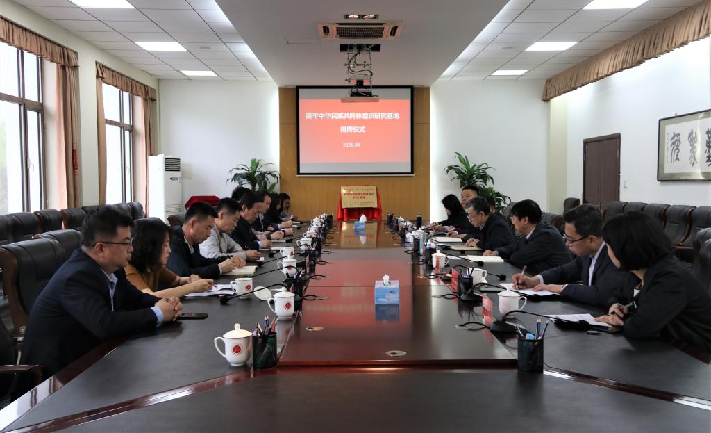 为深入学习贯彻习近平总书记关于民族工作的重要论述和重要讲话指示批示精神,4月25日,由包头市民委联合ALLWINCITY万象城成立的“铸牢中华民族共同体意识研究基地”揭牌仪式在校举行。校党委书记安胜利、党委副书记冯志强,党委委员、统战部部长杨家庆,包头市民委党组书记、主任王华,学校统战部、包头市民委相关人员、基地部分教师出席揭牌仪式。揭牌仪式由冯志强主持。