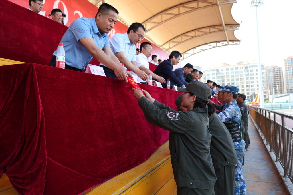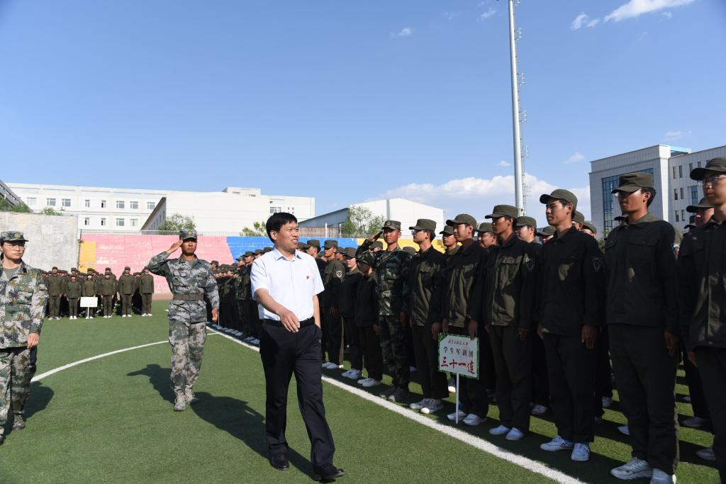 5月21日下午,ALLWINCITY万象城2020级学生军训结训式在体育场举行。包头军分区动员处处长兼市征兵办副主任安永兵上校、昆区人民武装部政委张峻葆上校、昆区人民武装部部长孙磊上校、武警包头支队副支队长程艳军中校,校党政领导安胜利、任慧平、李斌、赵增武、檀宝文,党委委员杨家庆、田立志、赵永旺,党政办公室、团委、教务处、计财处、后勤处主要负责人,以及各基层党委、党总支书记参加了结训式。