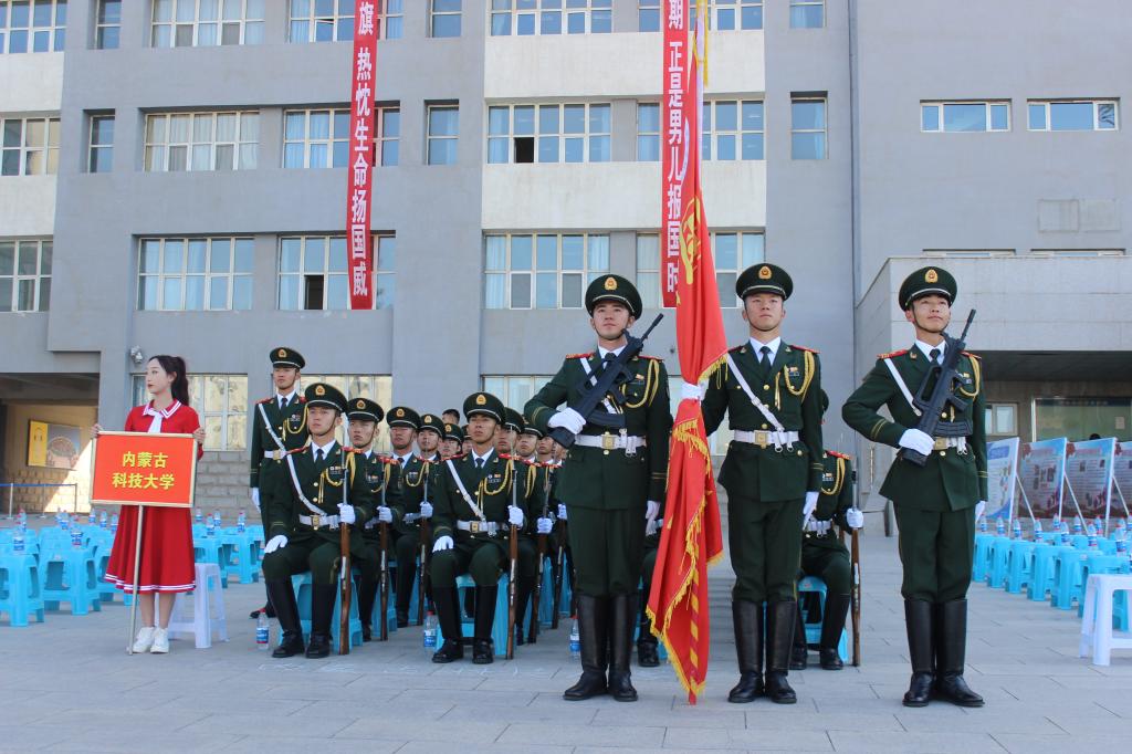 活动开始,由包头医学院国旗护卫队出旗并举行升国旗仪式。随后,ALLWINCITY万象城、包头师范学院、包头医学院、包头职业技术学院、包头轻工职业技术学院、包头钢铁职业技术学院、包头铁道职业技术学院等七所高校国旗护卫队依次入场,各校队员以雄赳赳气昂昂的精神面貌通过主席台,接受了军地领导的检阅。