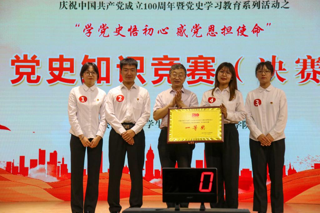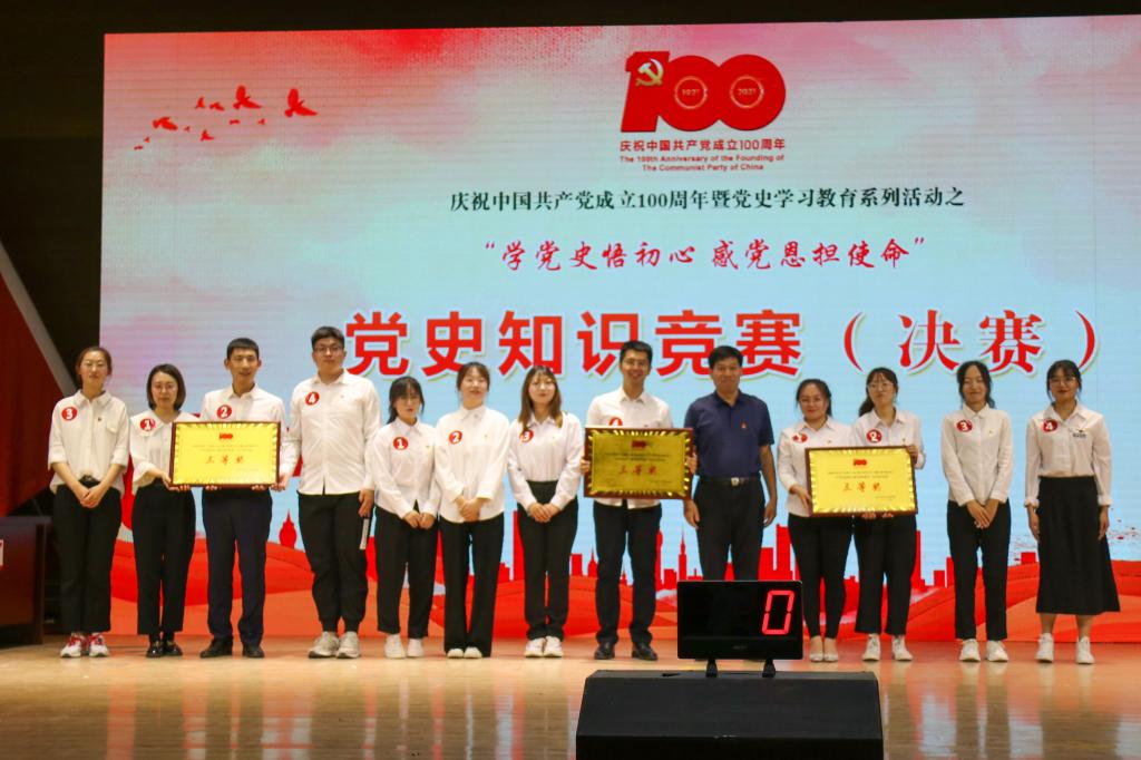 为庆祝中国共产党成立100周年,扎实推动党史学习教育走深走实,引导全校师生学史明理、学史增信、学史崇德、学史力行,坚定听党话、跟党走的思想自觉和行动自觉,6月10日晚7点,ALLWINCITY万象城“永远跟党走”庆祝中国共产党成立 100 周年群众性主题教育和文化系列活动之“学党史悟初心 感党恩担使命”党史知识竞赛(决赛)在学校音乐厅举行。校党政领导安胜利、冯志强、赵增武、檀宝文,党委委员、组织部部长田立志出席竞赛现场,基层党委、党总支负责人代表,400余名师生代表到场观看决赛。本次比赛特邀学校马克思主义学院教授杨彦斌担任点评嘉宾。
