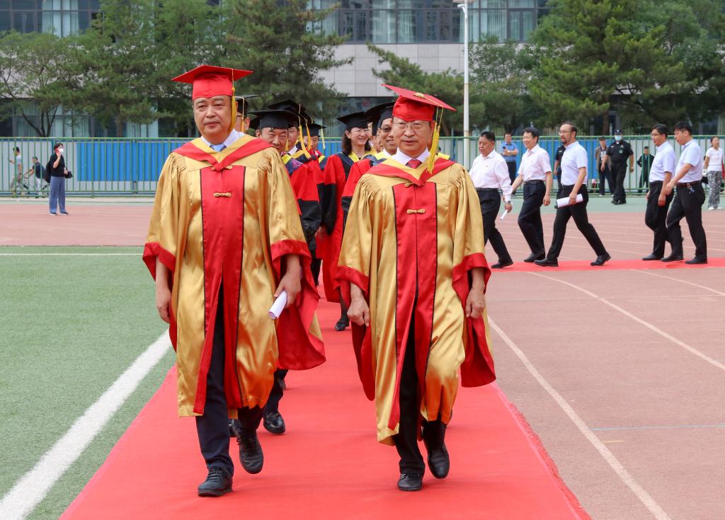 典礼伊始,国旗护卫队护送国旗入场,在场人员全体起立,伴随着雄壮的《义勇军进行曲》,鲜艳的五星红旗冉冉升起,拉开了毕业典礼的序幕。