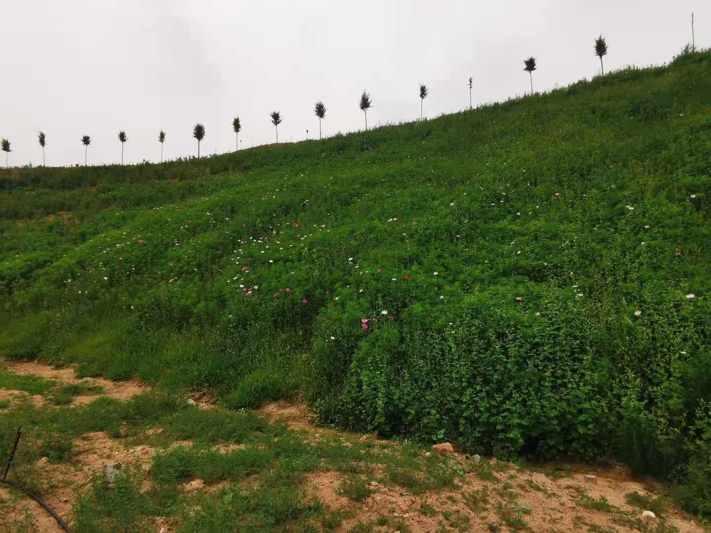验收组专家对矸石山进行了实地踏勘,测量了注浆孔孔内温度,查看了矸石山复垦绿化状况。经勘查,注浆孔内温度由原来最高700℃全部降到80℃以下,矸石山表面温度恢复正常,植被生长茂盛,一改往日“秃山”“荒山”旧貌,“火焰山”变成了“绿水青山”。