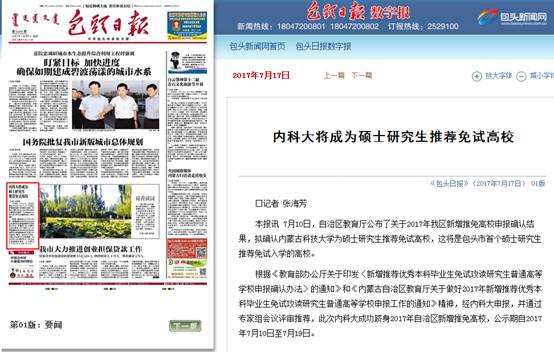 根据《教育部办公厅关于印发〈新增推荐优秀本科毕业生免试攻读研究生普通高等学校申报确认办法〉的通知》和《内蒙古自治区教育厅关于做好2017年新增推荐优秀本科毕业生免试攻读研究生普通高等学校申报工作的通知》精神,经内科大申报,并通过专家组会议评审推荐,此次内科大成功跻身2017年自治区新增推免高校,公示期自2017年7月10日至7月19日。