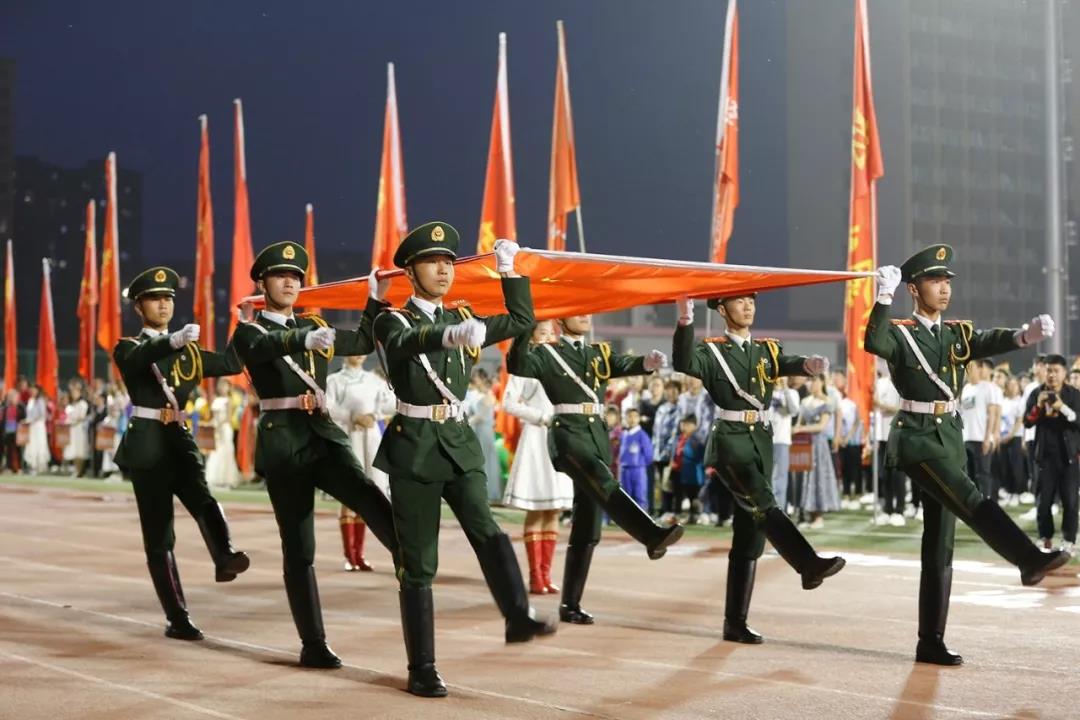 随后是来自不同学院、不同民族的学生组成的450人表演团入场。悠扬的马头琴声响起后,搏克、射箭等民族传统体育项目一一展示。近60名民族舞蹈演员将民族元素与现代舞蹈相结合,营造出欢乐祥和的画卷。