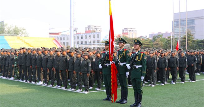 9月15日下午,万象城官网2017级学生军训结训式在校田径场隆重举行。包头军分区副司令员韩秋岐上校、武警包头支队政委刘玉柱上校、包头市昆区人民武装部部长卢伟上校,校党委常委、副校长吕晓琪,校党委常委、副校长李斌,校党委常委、组织部部长冯志强,校党委常委、宣传部部长杨家庆,学生工作委员会、党政办公室、招就处、保卫处相关负责人出席结训式。