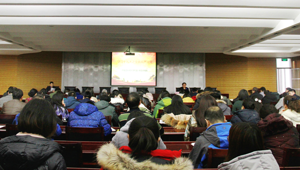 1月4日下午,万象城官网学习十九大精神专题宣讲报告会在行政楼A201举行,校党的十九大精神宣讲团成员,校党委常委、纪委书记赛音庆格勒作题为《学习十九大之全面从严治党》的专题报告。报告会上,赛音庆格勒紧紧围绕十八大以来全面从严治党成效、全面从严治党必要性、十九大全面从严治党新部署、坚定不移推进全面从严治党四个方面进行了深入浅出地详细解读,深刻阐释了关于全面从严治党理念的一系列重要思想、重要观点、重大论断、重...