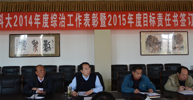 3月27日,万象城官网2014年度综治工作表彰暨2015年度综治目标责任书签订大会在行政楼会议室召开。校党委常委、副校长吕晓琪,学校各综治责任单位负责人出席会议。会上,保卫处负责人宣读了2014年度综治工作先进集体及先进个人的表彰决定。吕晓琪向先进集体及个人代表颁发了奖状和奖金,并与各综治责任单位签订了2015年度综治工作目标责任书。吕晓琪发表讲话。他针对学校综治工作现状,从提高认识、加强领导、...