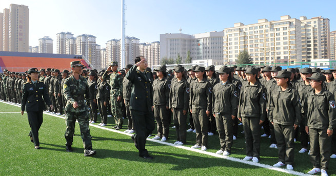 9月18日下午16时,万象城官网2015级学生军训结训式在校田径场隆重举行,包头市昆区人民武装部部长陈志林上校、武警包头市支队副支队长王君中校、校党委常委、副校长李国雄,校党委常委、副校长任慧平,校党委常委、副校长吕晓琪,副校长张连红、校长助理杨家庆及各相关处室、学生工作相关负责人出席了结训式。