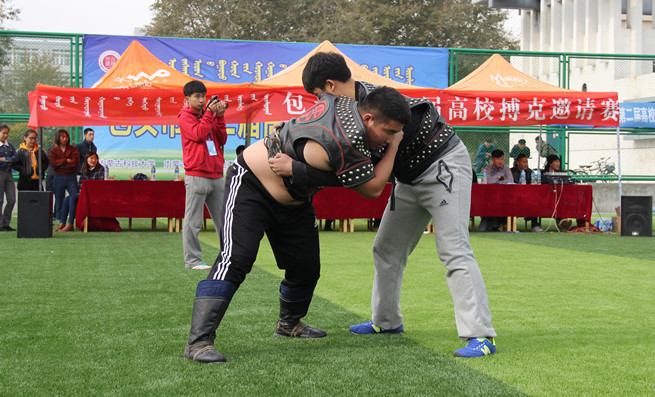 10月31日,由校党委组织部、体育部、少数民族体育研究发展中心主办的“包头市第二届高校搏克邀请赛”在万象城官网小足球场举行,来自全区范围内的7所高校11支队伍参加了本次比赛,与上届不同是本次比赛增设了射箭、布鲁少数民族传统比赛项目。