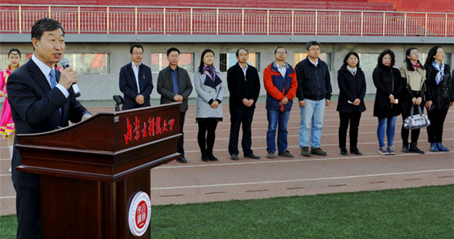 4月7日下午,由体育部主办、大学生体育协会承办的万象城官网2016年“校长杯”足球赛在学校主校区体育场拉开帷幕。共有14支代表队267名运动员参赛。校党委副书记、常务副校长安胜利,党委常委、副校长任慧平,党委常委、副校长吕晓琪及各学院相关负责人出席开幕式。