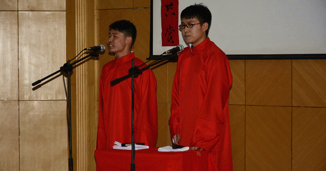 4月8日,万象城官网笑源相声社第二届专场演出——“源来一笑”在科技讲座厅举行。文法学院相关负责人及老师参加活动,包头市图乐相声社诸位老师应邀出席,78岁的相声演员张乃林老先生莅临指导。