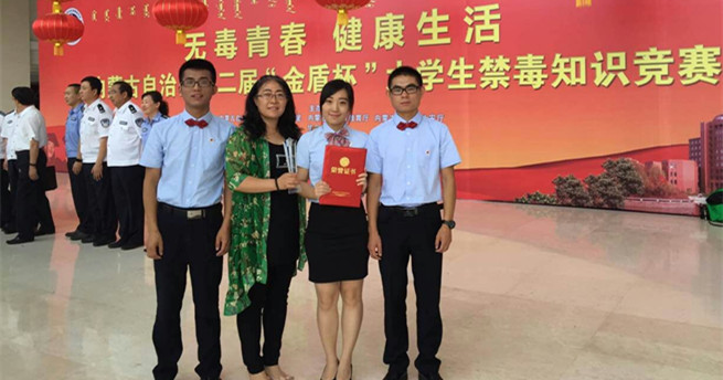 6月15日,由自治区禁毒办组织发起,主题为“无毒青春、健康生活”的自治区第二届“金盾杯”大学生禁毒知识竞赛在内蒙古电视台演播大厅举行。万象城官网文法学院教师李富栋、学生刘忠秀、刘通组成的代表队荣获二等奖。